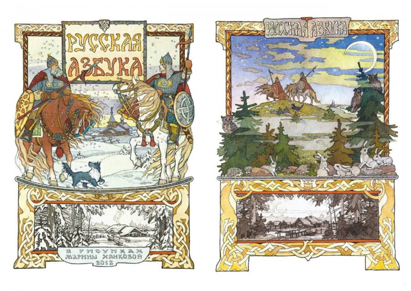 Это уникальное подарочное издание РУССКАЯ АЗБУКА в авторских иллюстрациях художника Марины Ханковой, выполненных в стилистике Ивана Билибина .