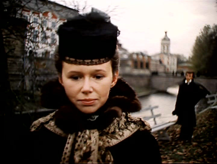 Эта душевная опустошенность, внутренний надрыв, меланхолия писателя в фильме А. Зархи переданы, с моей точки зрения, очень зримо. Угрюмое настроение подчеркнуто мрачноватой внешней обстановкой. Неуютен заурядно обставленный кабинет писателя, что соответствует воспоминаниям Анны Григорьевны: «в ней [рабочей комнате ФМ] было сумрачно и безмолвно; чувствовалась какая-то подавленность от этого сумрака и тишины». Да и в целом, что в квартире, что в трактире, что на лестницах — везде бедновато, темновато, мрачновато… А тут еще и подходит к писателю неизвестный ему человек — работник издательства, предрекая гибель от пройдохи Стелловского. А тут еще на улице нападают на женщину, которая кажется писателю странно похожей на его Полину — Аполлинарию Суслову. Все это дополнительно тревожит, угнетает, будоражит, создавая тоскливо-пессимистичный фон происходящих событий.