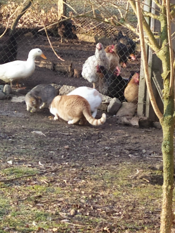 Сейчас мы живём в Болгарии. Животных у нас много. Птицы в основном, куры, утки, гуси, индюки. Ну и коты, конечно, четверо. А ещё я люблю делать скворечники, они у нас на каждом дереве.