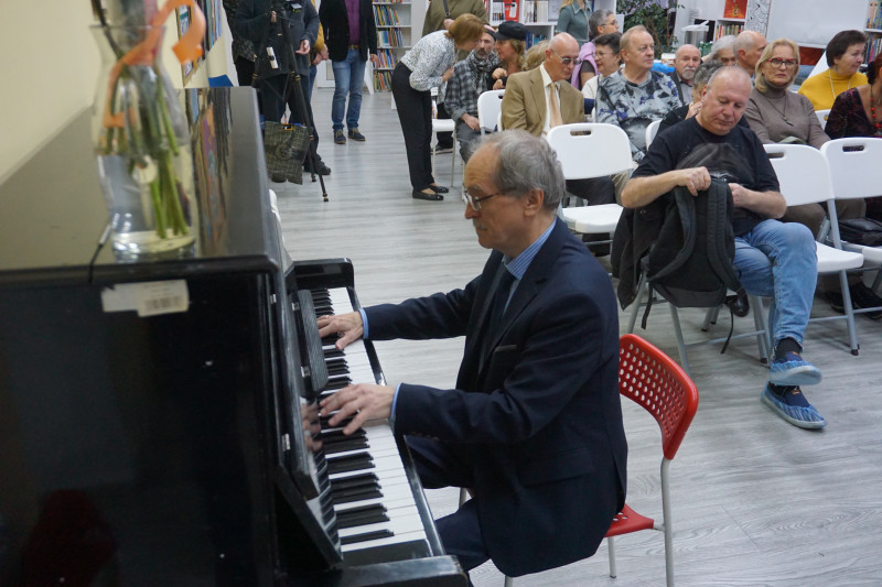 Но надо рассказать, что гости начали собираться в уютном пространстве библиотеки задолго до назначенного времени. Зал заполнялся друзьями Надежды, ее коллегами по поэтическому цеху, любителями поэзии. К ним присоединились музыканты и исполнители. Всех гостей встречал сладкий стол и горячий ароматный чай, почти как тот, из стихотворения. Было много объятий, радостных возгласов, воспоминаний, цветов и даже музыкальные импровизации на фортепиано в исполнении Валентина Василевского.