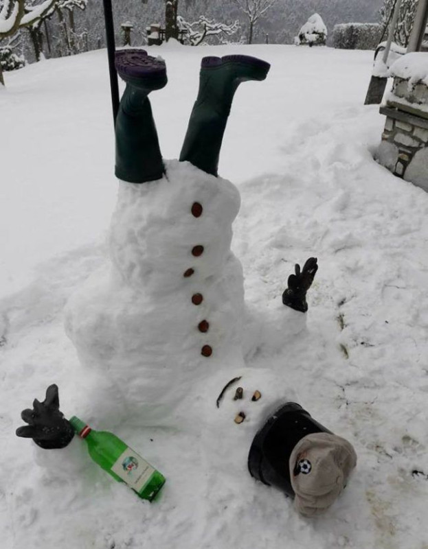 Снеговик в сугроб прилёг.