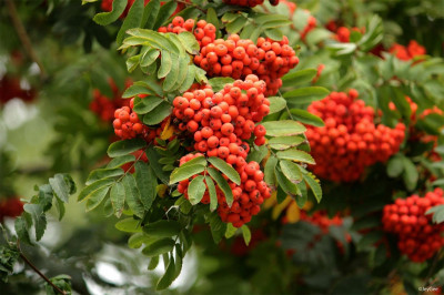 Теперь почитаем википедию о цвете рябиновых плодов: оранжево-красные