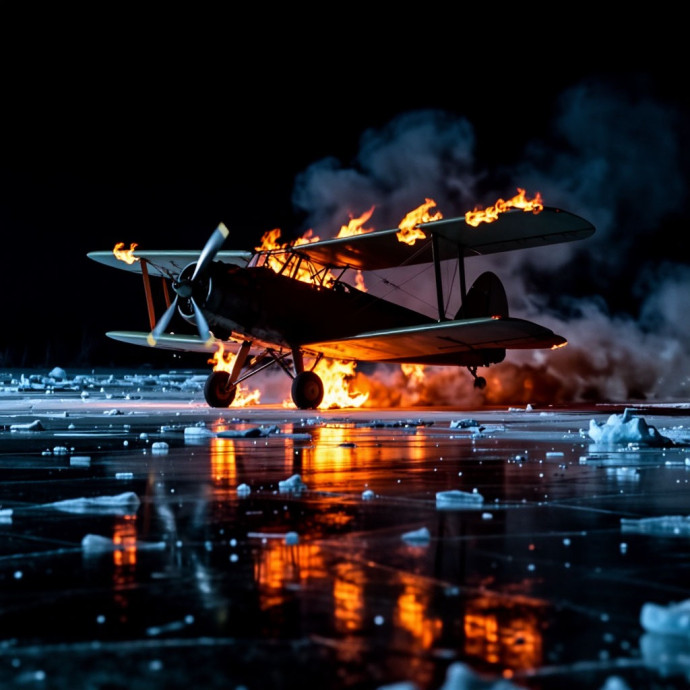 Он бросил машину вниз. Удар о лёд был страшным — самолёт подскочил, снова ударился, заскрежетал, заскользил. И затих.