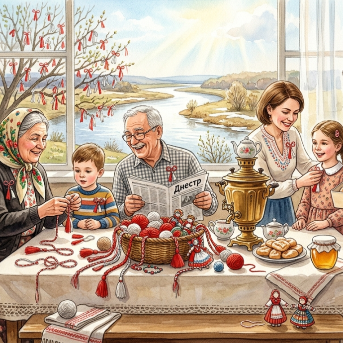 Дедушка Ион, воспользовавшись паузой, подозвал внуков к окну, выходящему на реку. — Смотрите, дети. Видите Днестр? Он еще темный, свинцовый, холодный. Но лед уже ушел. Видите, как вода поет? Так и человек: зимой мы закрываемся, прячемся в теплые пальто, в свои заботы и обиды, как в ледяной панцирь. А сегодня мы открываемся весне. Есть старая, очень мудрая примета: как встретишь Мэрцишор, так и весь год проведешь. Если сегодня улыбнешься каждому и повяжешь ниточку с добрым помыслом — весь год проживешь в согласии с природой и с людьми. — Деда, а если я потеряю свой Мэрцишор? — вдруг встревоженно спросил Андрейка, прижимая ладошку к груди. — Весна на меня обидится? И желание не сбудется?