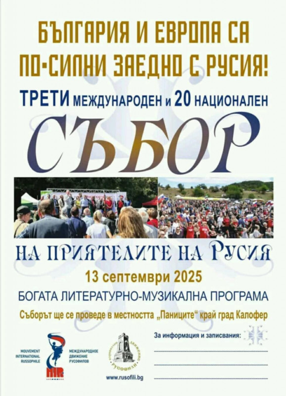 13 сентября 2025 года в Болгарии прошёл XХ Национальный и III Международный собор друзей России.