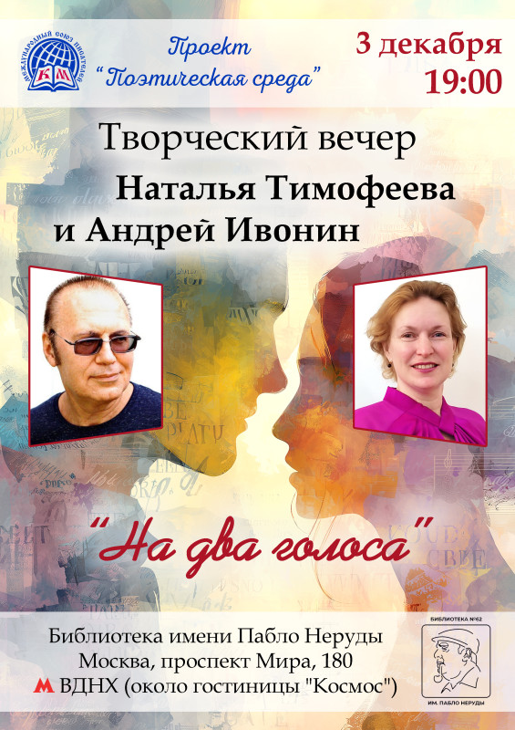 Приглашаем на творческий вечер поэтов Натальи Тимофеевой и Андрея Ивонина