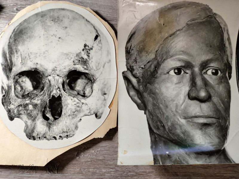 На фото фрагмент презентации: материалы моей дипломной работы по восстановлению внешности по черепу (метод Герасимова), которые использованы в романе «Призраки затонувшего города».