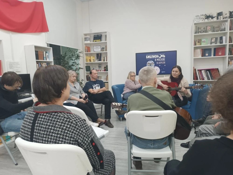 Поздним субботним вечером в библиотеке имени Пабло Неруды в рамках традиционной «Библионочи» состоялось мероприятие «И музыка, и слово», организованное Литературным клубом «Писатели за добро».