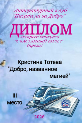 Пользователи Кристина Тотева 0 Кристина Тотева Профиль Лента Комментарии 2 Конкурсные произведения 4 Экспресс-конкурсы 2 Рейтинг: 5 Последний визит: 21 час назад Регистрация: 23 дня назад Анкета Город: Габрово Возраст: 45 лет Награды Третье место в экспресс-конкурсе "СЧАСТЛИВЫЙ БИЛЕТ", проза Стена пользователя Загрузка... Наталья Симанова 10 дней назад # Загрузка... 1 ответ