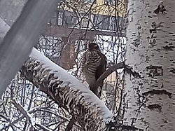Ястреб-перепелятник на «дежурстве» у кормушки, фото сделано автором строк.