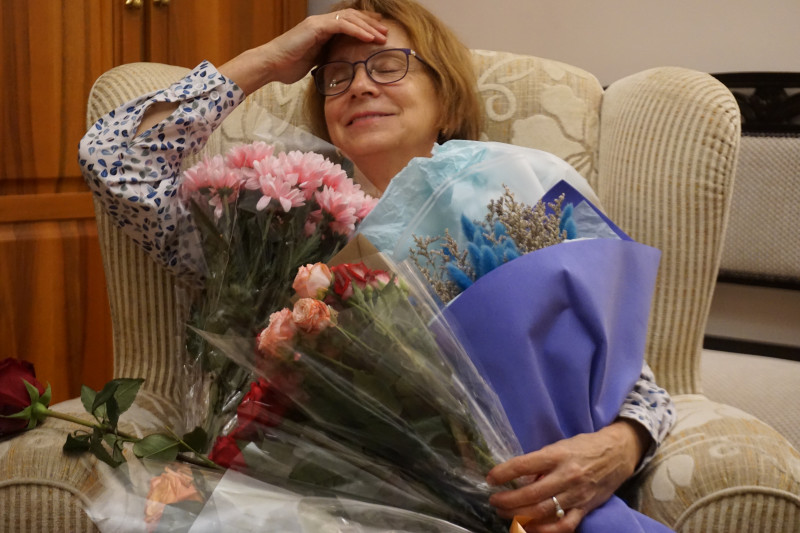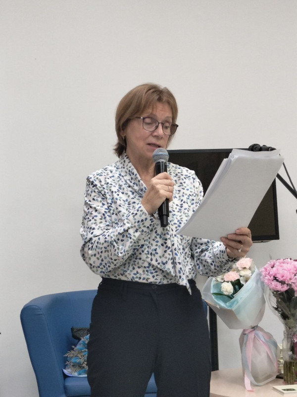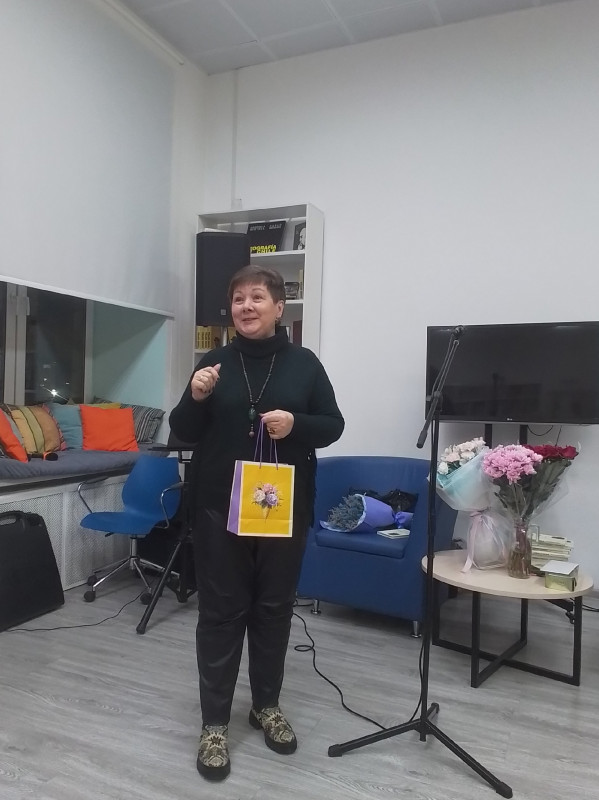 Но надо рассказать, что гости начали собираться в уютном пространстве библиотеки задолго до назначенного времени. Зал заполнялся друзьями Надежды, ее коллегами по поэтическому цеху, любителями поэзии. К ним присоединились музыканты и исполнители. Всех гостей встречал сладкий стол и горячий ароматный чай, почти как тот, из стихотворения. Было много объятий, радостных возгласов, воспоминаний, цветов и даже музыкальные импровизации на фортепиано в исполнении Валентина Василевского.
