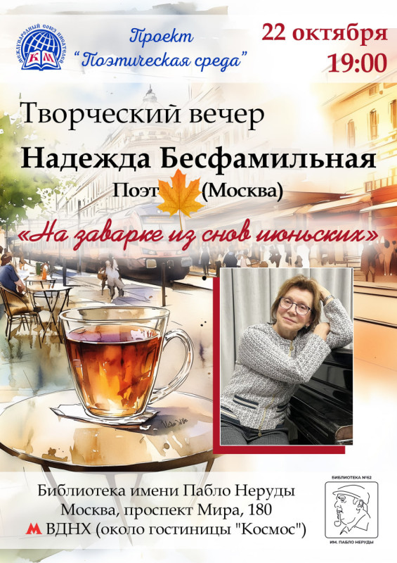 22 октября в московской библиотеке им. Пабло Неруды состоялось очередное мероприятие в рамках проекта «Поэтическая среда», который МСП им. св.св. Кирилла и Мефодия и Литературный клуб «Писатели за Добро» реализуют совместно с библиотекой.