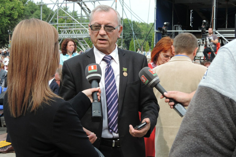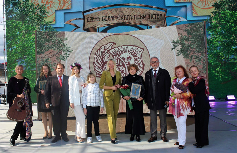 На фото: День белорусской письменности. М.П. Поздняков с коллегами — литераторами Беларуси