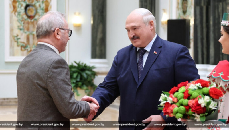 На фото: президент Республики Беларусь А. Лукашенко вручает награду М. Позднякову