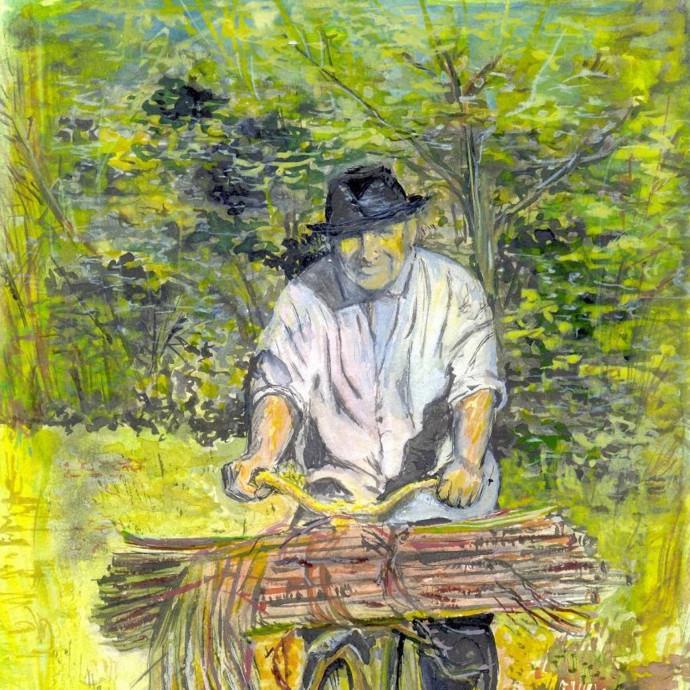Хорошо, что у меня сохранилась фотография деда на том велосипеде. Теперь ещё и рисунок-акварель «Мой дед Василий Миронович».