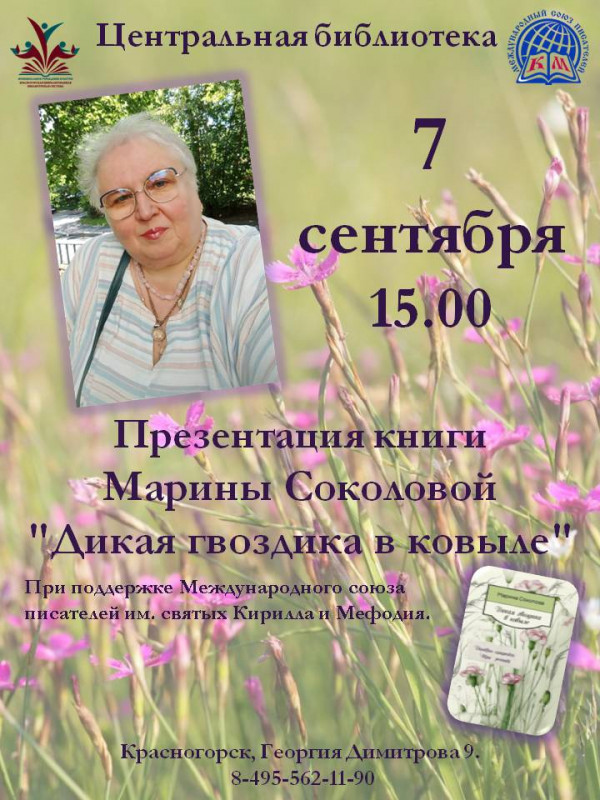 Встреча пройдёт 7 сентября в Центральной библиотеке г. Красногорска по адресу: ул. Георгия Димитрова, д. 9. Вход свободный.