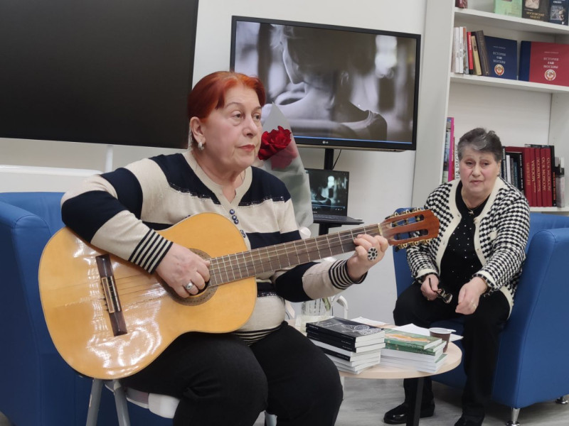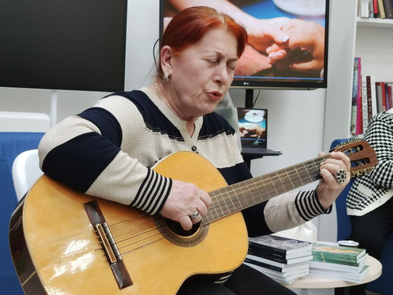 Необыкновенно украсила вечер своей музыкой и пением поэт, композитор, исполнитель авторских песен, а также давний друг нашей героини — Инна Тхорик, исполнившая для собравшихся несколько песен на стихи Инны Заславской, а также на стихи Марины Шапиро и присутствующей в зале Надежды Бесфамильной.
