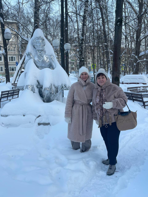 На фото: мы с Еленой Шуваевой у памятника Пушкину напротив Центральной библиотеки Красногорска. Как пошутила Наталья Матвеева: «Леночки на снегу».